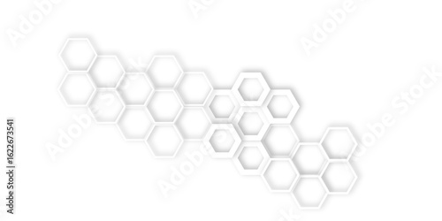 modern hexagons interlock pattern subtle shadows add depth to the design, creating a three dimensional effect on a bright white surface background.