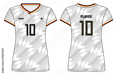 Women Sports Jersey t-shirt flat sketch design illustration with abstract check pattern suitable for girls and Ladies for Volleyball jersey, Football, Soccer and netball, Sport uniform kit for sports