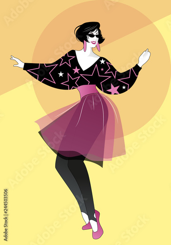 Retro vintage 80 Memphis style of fashion illustration.