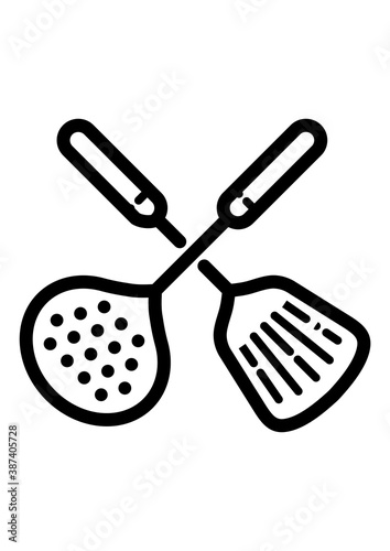 Set line Frying pan, Kitchen colander, whisk and Sponge with bubbles. Business infographic template. Vector