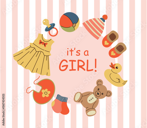 Newborn’s accessories collection socks, shoes, bibs and heats basic set of technical sketches for babies