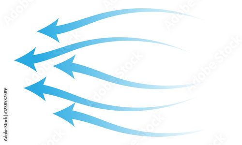 Air flow arrow. Set of arrows showing direction of air movement. Air flow isolated on white background.