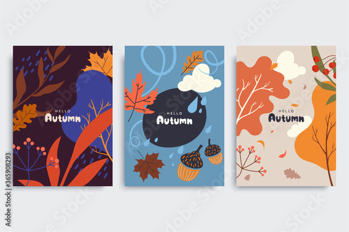 Set of cute autumn illustrations. Vector templates for card, poster, flyer, cover and other use.