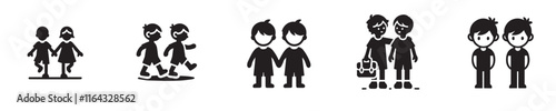 Series of black and white icons depicting various activities and interactions between people. The icons include a handshake, a smiley face, a person fixing something, and a person sitting on a bench
