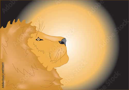 Lion standing with detailed mane and calm expression in natural pose vector illustration