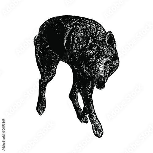 Jaguar Walking in Jungle Vintage Engraving, Monochrome Animal Line Art, Detailed Wildlife Etching, Rustic Nature Print, Exotic Fauna Sketch, Old Style Illustration, Trendy Safari Design