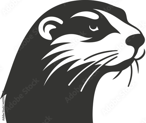 Save the mink banner. Mink face, forest silhouette. Animal conservation concept. Vector.