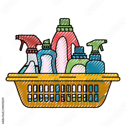 Vector Icons Set of Hand drawn doodle set of household cleaning supplies and containers. EPS Editable
