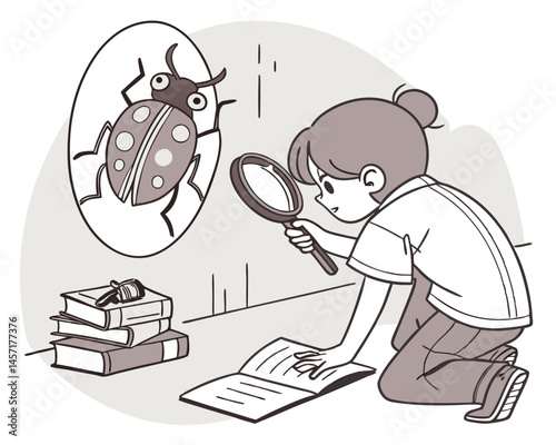 Illustration Of A Student Engaged In Reading, Studying And Concentrating