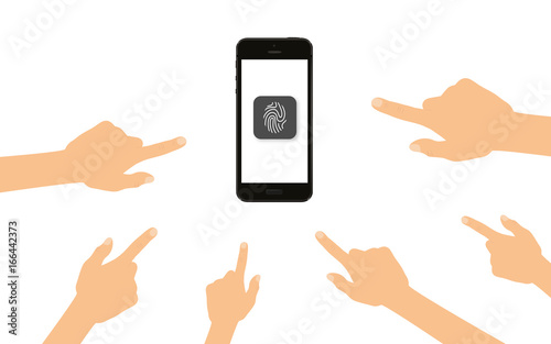 Finger zeigen auf Smartphone mit Daumenabdruck