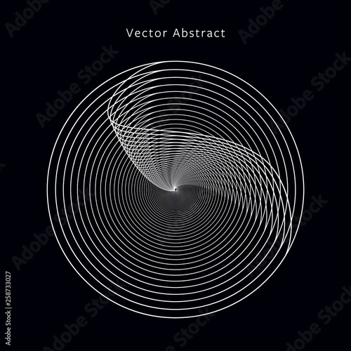 3D Lines Circle with Abstract Rings, Ripple. Background Modern Abstract Signal Radar. Vector Illustration for Banner, Poster, Postcard, Brochure.