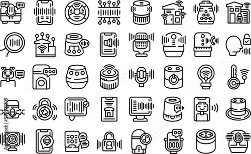 Smart assistant icons set outline vector. Smart voice. Digital music