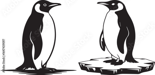 Charming illustration of a family of three penguins standing on an ice floe in the ocean