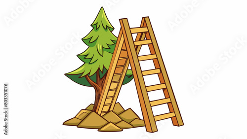 A wooden ladder leaned against a tree its brown hues blending in with the natural surroundings. The ladder was handcrafted with smooth rungs and. Cartoon Vector