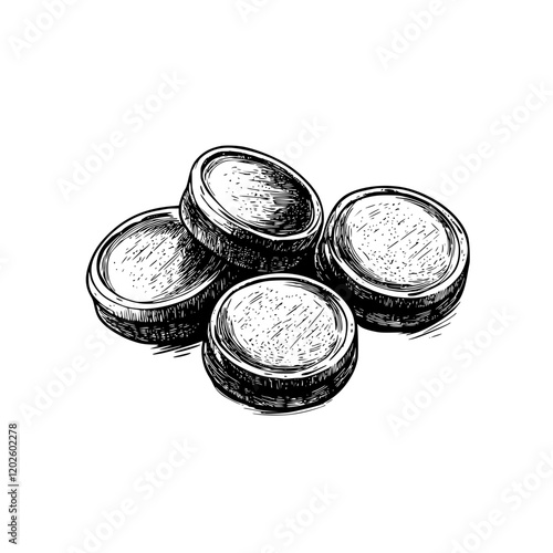 Engraved illustration of stacked squares of caramel candy showcasing texture and detail in vector style
