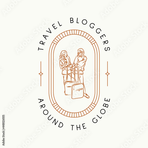Hand drawn line art minimal travel vector logo design template. Illustration of elegant signs and badges for travel agency, tour operator, photographer, travel blogger.