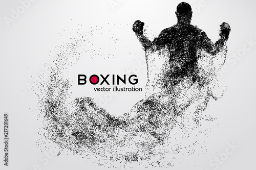 Silhouette of a muscular boxer in a fighting stance against a white background