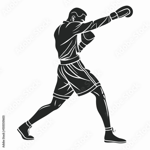 Stylized silhouette of a boxer, showcasing form, technique, and athleticism in the sport of boxing. Vector illustration