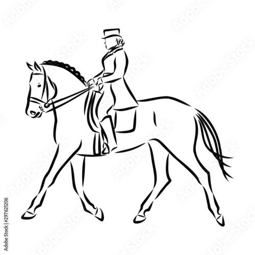Horseback riding equestrian sport horse rider equestrianism horse riding outline drawing vector art