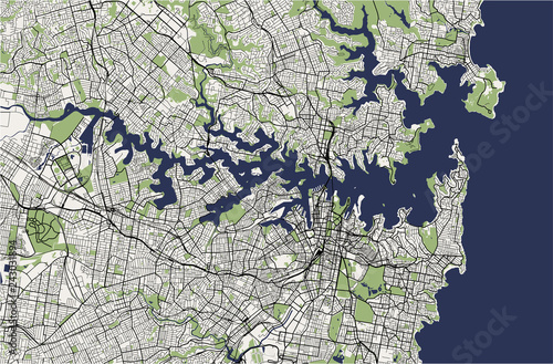 Australia black silhouette map vector illustration isolated on white background with country name label detailed continental outline design.