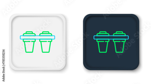 Glowing neon line Water filter icon isolated on purple and green background. System for filtration of water. Reverse osmosis system.  Vector Illustration