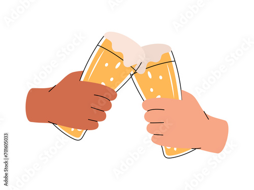 Illustration of beer mugs clinking in color, outline, and silhouette