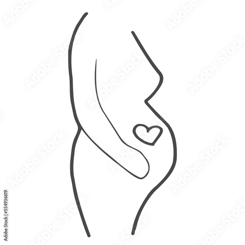 Line art of a pregnant woman in a tank top sitting cross legged with a heart on her belly outline silhouette
