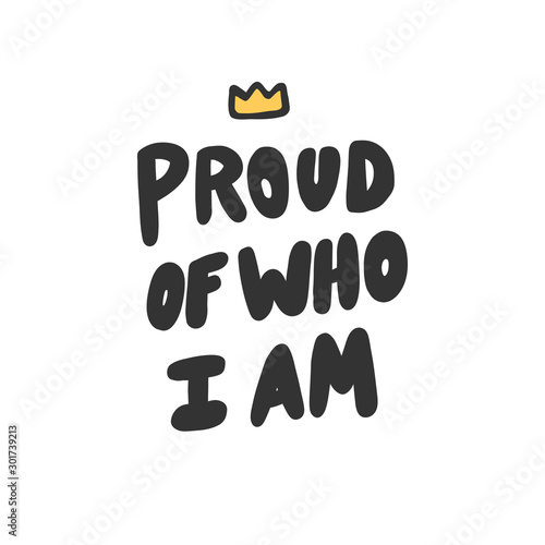 Be proud of who you are. Iinspirational hand drawn lettering quote. Blue and yellow texture. Motivational phrase. T-shirt print, poster, postcard, banner design.