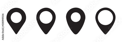 Location icon, map pin icons in outline styles. For maps, GPS, navigation apps, location markers. A placemark, pointer, or marker on a geolocation map. A designation of an address or GPS location.