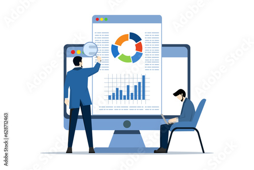 Online marketing, financial report chart, data analysis, and web development concept. SEO Optimization, web analytics and seo marketing social media concept. 3d vector illustration