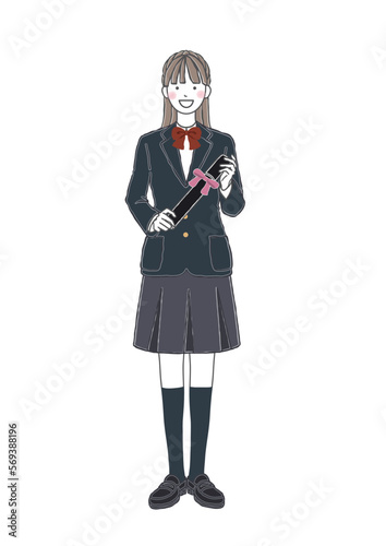 制服姿で卒業証書を抱える女の子