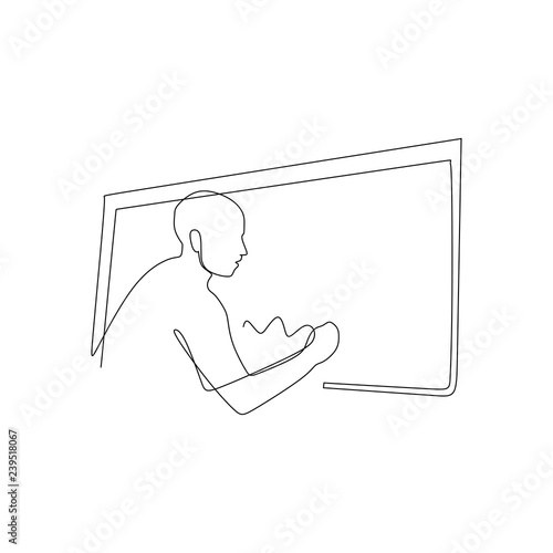 One line drawing of a teacher or student drawing on the chalkboard vector illustration