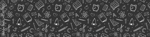 Seamless pattern with school doodles. Back to school hand drawn background for notebook, sketchbook. Learning, knowlege, skill concept. Seamless background with with stationery icons.