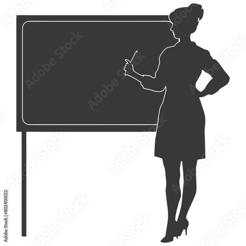VECTOR illustration of a female teacher pointing towards a smart or whiting board