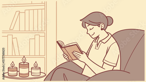 Candle on book illustration showing warm candlelight on open book pages, which represent candle on book in simple style. Detailed candle and book provide a gentle illumination.