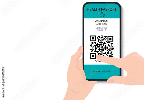 Health passport for traveling. New norms during covid-19 pandemic. Vaccination certificate with qr code on phone screen