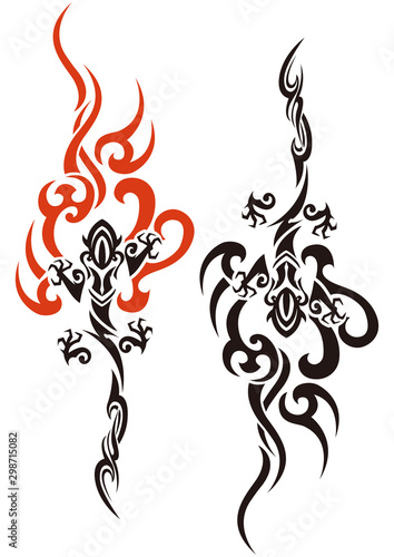 トライバル。 サラマンダーのタトゥー。 リザードのステッカーデザイン。
