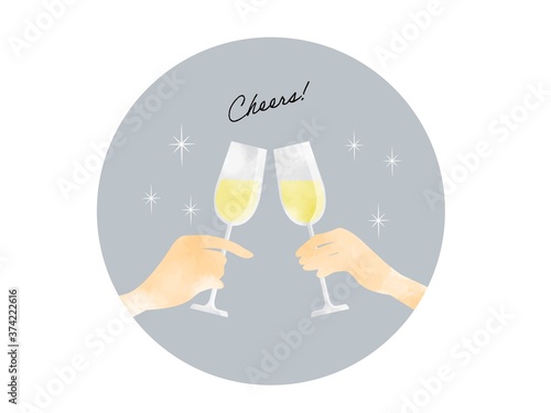 白ワインで乾杯 ワイングラスを傾ける コースター型