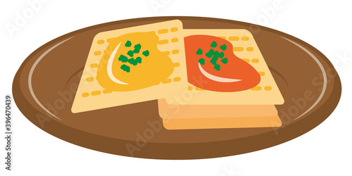 お皿の上の2種のソースのクラッカーのイラスト/白背景