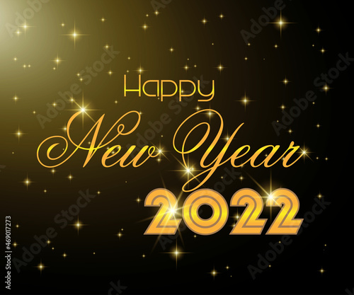 2022 new year effect text with black background, glitter gold effect, galaxy, gift and snake. Happy new year 2022 holiday poster