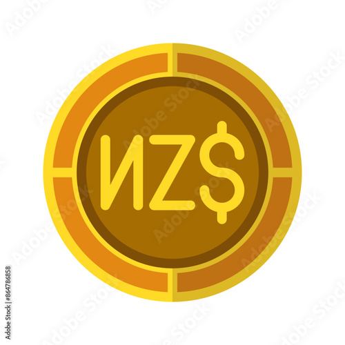 Dollar NZD Currency Icon. New Zealand Financial Symbol Flat Icons, in golden color Graphic Design. Vector Illustrations.