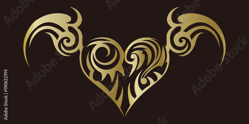 トライバル。ハートと翼。ステッカー。エンブレム。