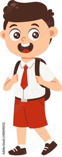 Back to school boy cartoon character, Elementary school student in red white uniform with backpack