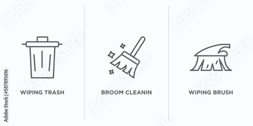 cleaning outline icons set. thin line icons such as wiping trash, broom cleanin, wiping brush vector. linear icon sheet can be used web and mobile