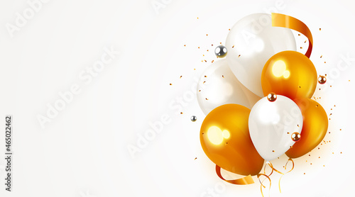 Realistic balloon happy birthday banner, luxury anniversary party poster template with pink and gold balloons.