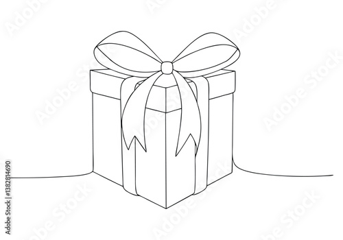 Elegant single line drawing of gift box with ribbon for modern design elements and holiday promotions