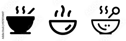 Soup and cuisine icons set – flat, outline, culinary and food symbols