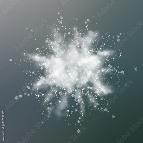 Silver light effect. Glowing white star with bright particles and bokeh. Magic glittering burst with dust. Silver shining explosion. Sparkling flash isolated. Vector illustration