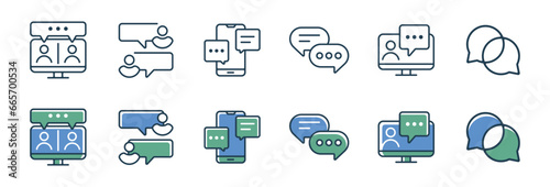 set of online talking message bubble chat discussion icon vector social communication element symbol illustration