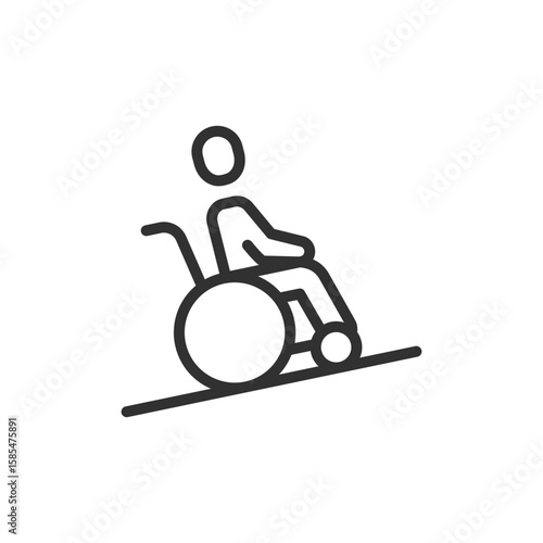 Black and white icon of a person in a wheelchair on a ramp accessibility disabled